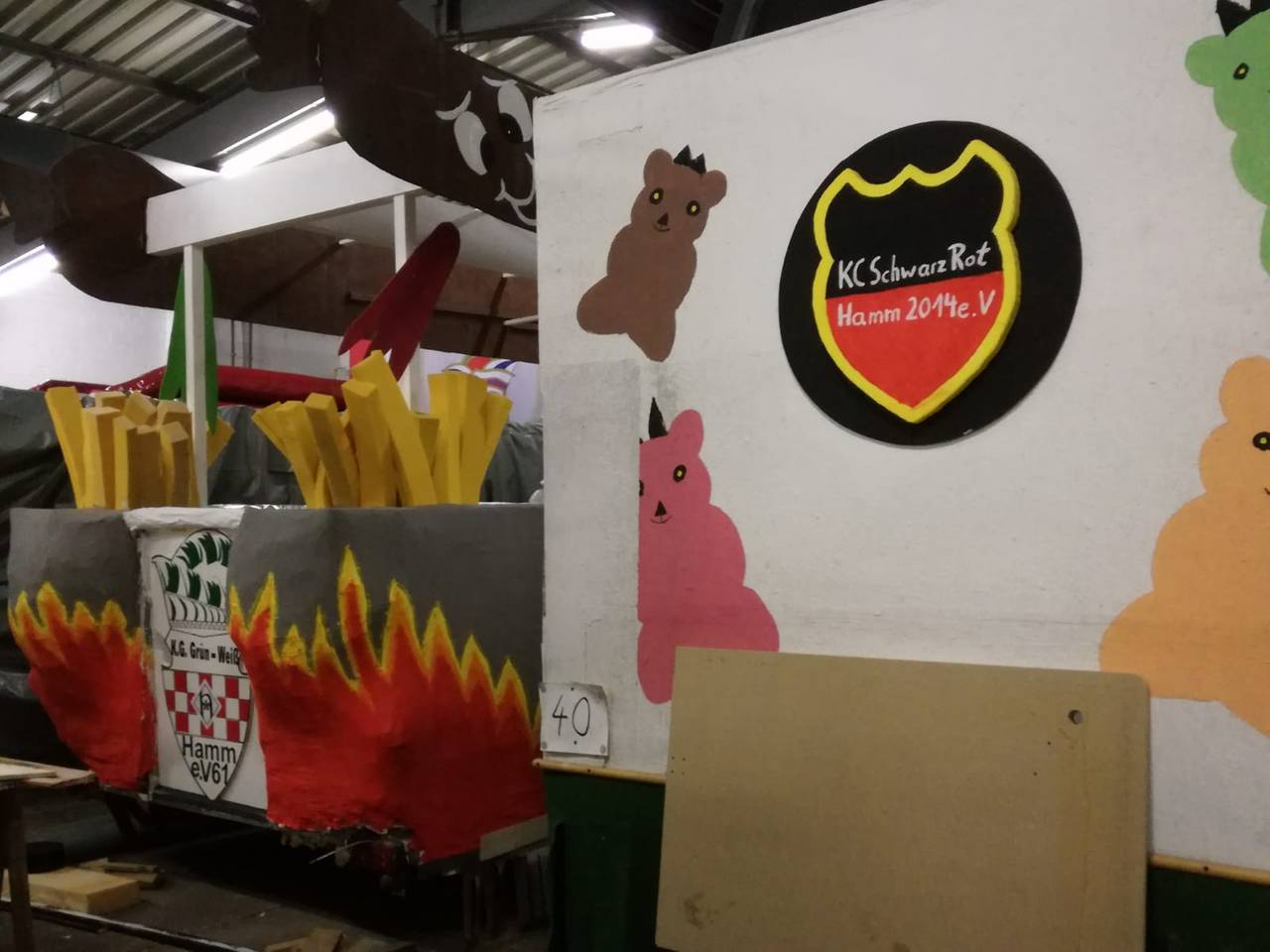 Mit 67 Teilnehmern, darunter Wagen, Fußgruppen und Co. ging der Rosenmontagsumzug 2019 durch den Hammer Westen bis in die Innenstadt. In diesem Jahr will das Festkomitee Hammer Karneval das noch einmal toppen: Rund 70 Gruppen werden dabei sein und für Kamelle und gute Stimmung sorgen. Dafür laufen schon seit gut einem Jahr die Vorbereitungen. Dazu zählt natürlich auch das Bauen und Dekorieren der Umzugswagen.