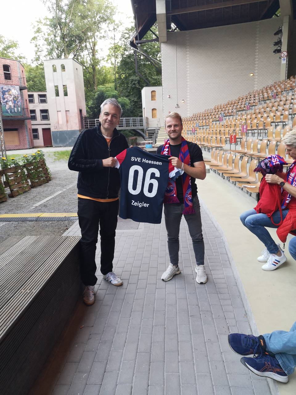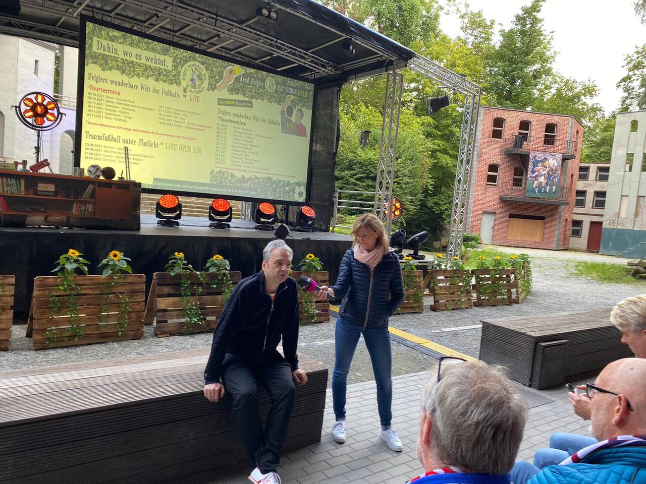 Fußball-Comedy stand auf dem Programm der Waldbühne Hamm-Heessen und zwra mit keinem geringeren als Arnd Zeigler. Vorher gabs noch ein Meet & Greet mit Mitgliedern des SVE Heessen - und zwar in voller Montur. Da war Arnd Zeigler schon beeindruckt.