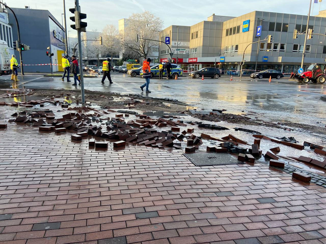 Straßen gesperrt wegen Wasserrohrbruch in Hamm