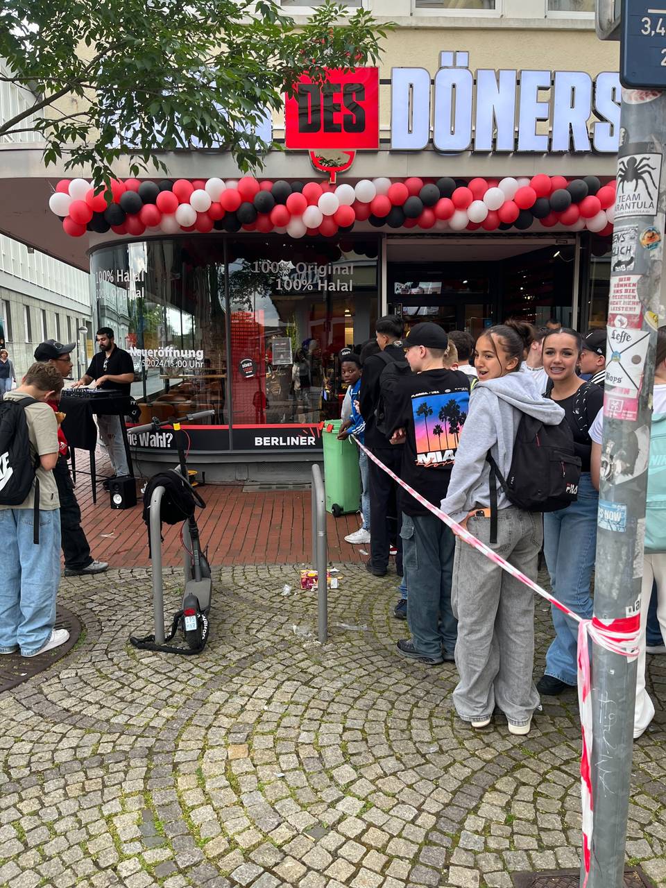 Am Donnerstag (16.5.) hat am Marktplatz in Hamm "Das Haus des Döners" eröffnet. Ein Sicherheitsdienst war im Einsatz, um dem Andrang Herr zu werden.