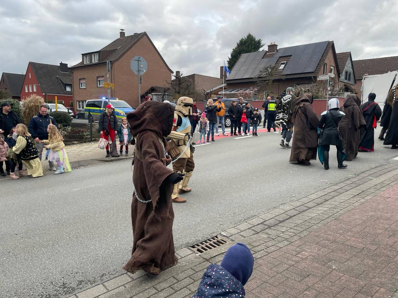 Wer sich nicht bis zum Rosenmontag gedulden wollte, konnte schon am Sonntag, 11.02.2024 den Funken-Umzug in Bockum-Hövel besuchen. Der Funkenumzug hat schon lange Tradition im Stadtteil und erfreut sich großer Beliebtheit. Das Motto in diesem Jahr lautete: "Mit Ahoy durch den Karneval". Los ging es um 14:11 Uhr an der Strackstraße. Die Abschlussparty fand dann ab 16:30 Uhr im Saalbau "Anno 03" in der Berliner Straße statt.