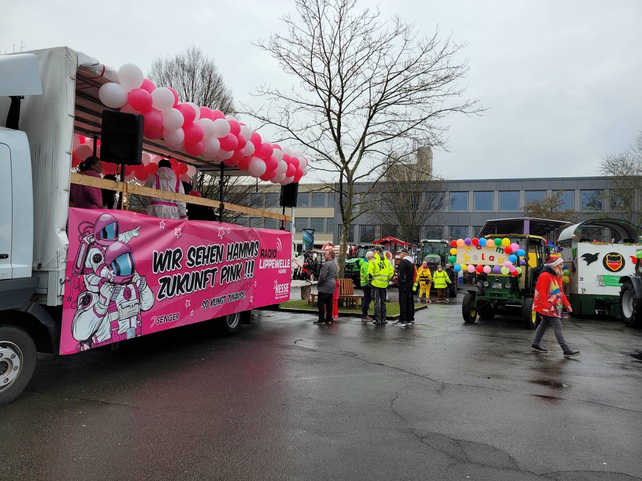Rosenmontag startet der Umzug in der Hammer Innenstadt unter dem Motto: "Der HAMMER Narr kennt keine Krise". Die Lippewelle iht mit ihrem Mottowagen "Wir sehen Hamms Zukunft pink! dabei. Los gehts um 14.11 Uhr. Startpunkt ist das Märkische Gymnasium - Ende am Marktplatz Pauluskirche. Die Strecke ist in diesem Jahr etwas kürzer: Es geht direkt über die Wilhelmstraße zum Marktplatz, der Schwenk über Schwarzen Weg und Otto-Brenner-Straße entfällt. Im Zeitraum von 13:00 Uhr bis ca. 17:30 Uhr kommt es im Bereich der Wilhelm-Liebknecht-Straße, Lohauserholzstraße, Otto-Brenner-Straße, Wilhelmstraße, Neue Bahnhofstraße, Südring, Westentor, Martin-Luther-Straße, Goethestraße sowie in der gesamten Innenstadt zu Behinderungen des Linienverkehrs. Im Zuge des Verlaufes werden alle betroffenen Linien weiträumig umgeleitet.