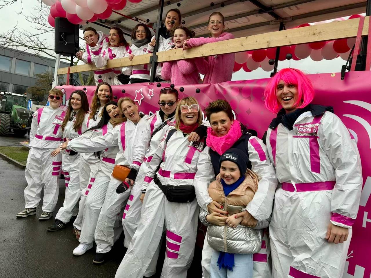 Das Lippewelle Wagen-Team beim Rosenmontagszug in Hamm