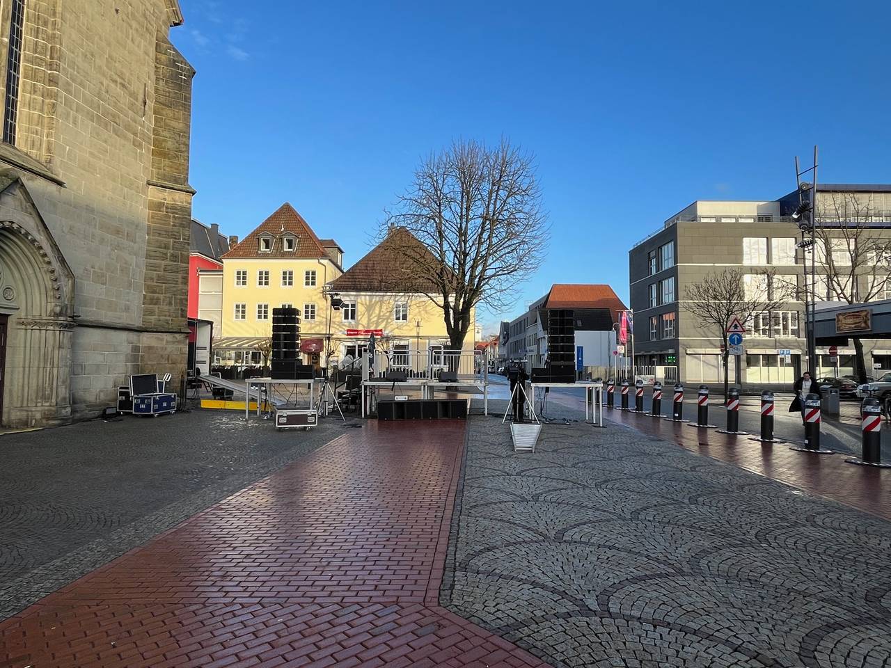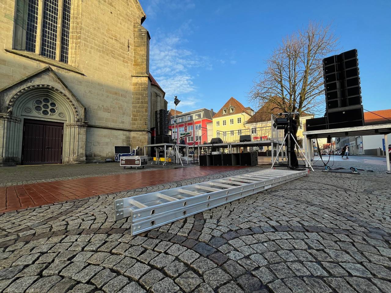 Für die Redner und die Band Kapelle Petra wird im Vorfeld eine Bühne aufgebaut.