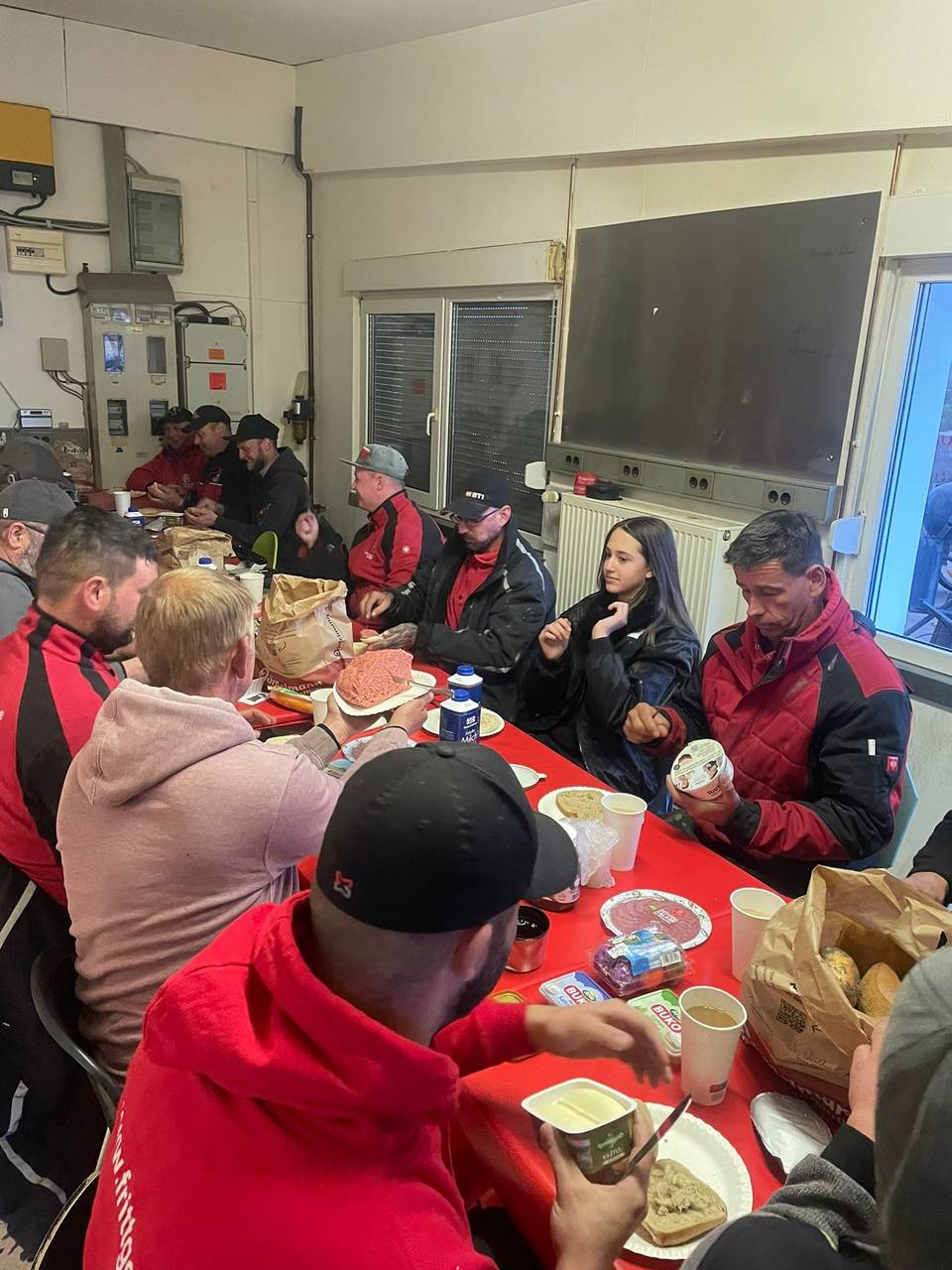 Bevor es fürs Dachdeckerteam zu den Terminen ging, war beim gemeinsamen Frühstück noch genug Zeit, etwas zu plaudern. Conny Kraft aus dem Lippewelle-Team hat die Gelegenheit genutzt und die Handwerker unter anderem gefragt, was ihren Job als Dachdecker so besonders macht.