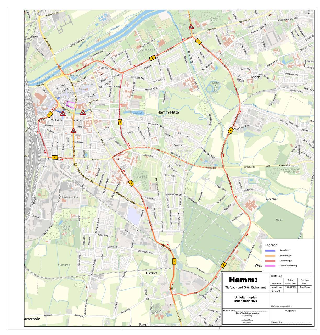 In der Hammer Innenstadt wird es für Autofahrer ab Juni eng. Die Stadt kündigt Straßen und Kanalbaumaßnahmen an und will zum Teil großräumige Umleitungen für den Auto-, Bus-, Rad- und Fußgängerverkehr einrichten. Im Mittelpunkt steht der Südring.