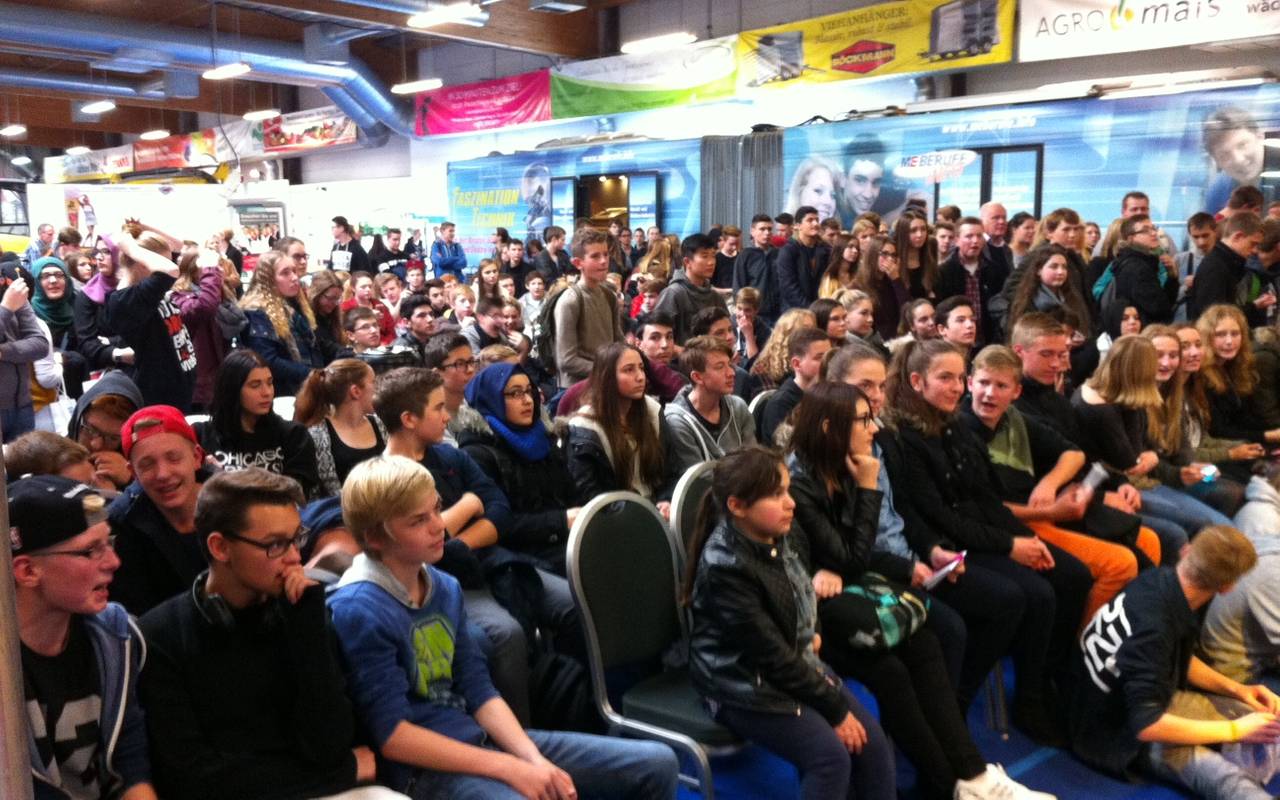 Höhepunkt ist die Bildungsmesse in den Zentralhallen. Über 90 Aussteller hoffen auf der Messe auf Kontakte zu neuen Praktikanten, Azubis oder Mitarbeitern. Damit sind freie Stellplätze auf der Messe so beliebt, dass sogar Unternehmen auf das kommende Jahr vertröstet werden mussten, so Alexander Tillmann von den Zentralhallen.