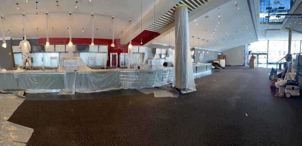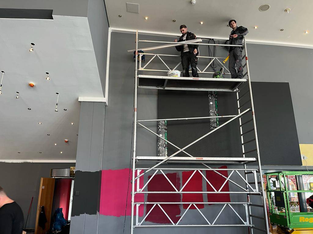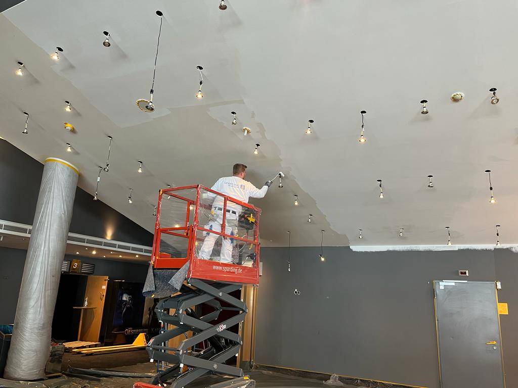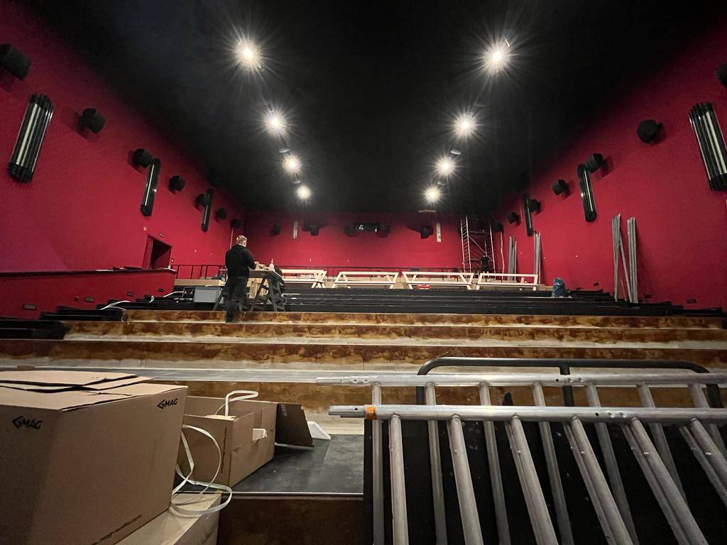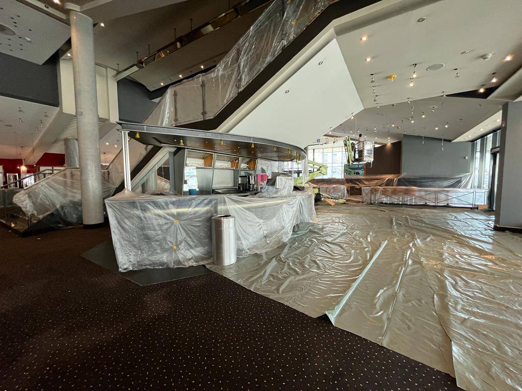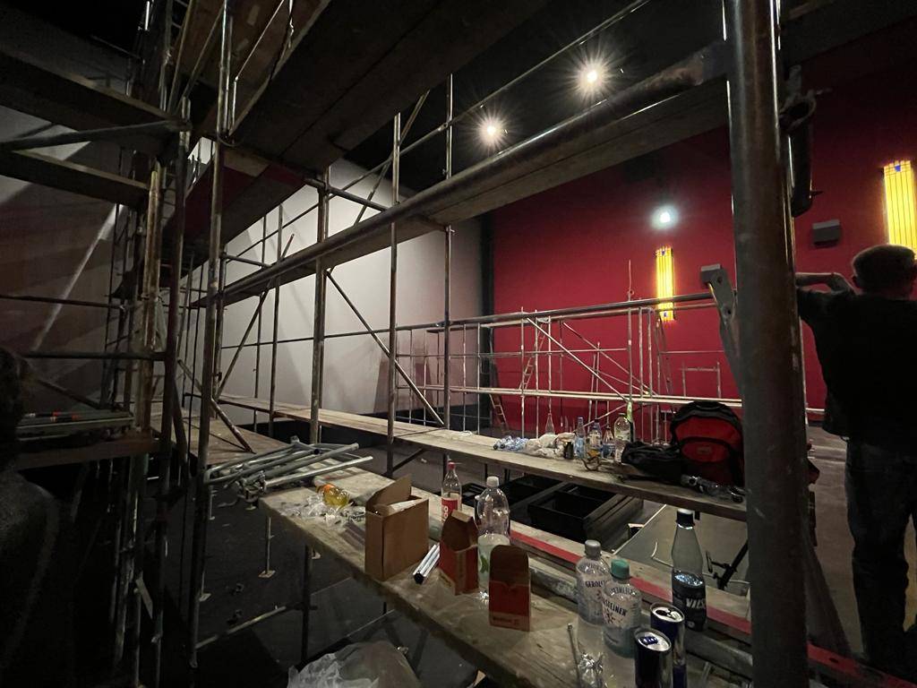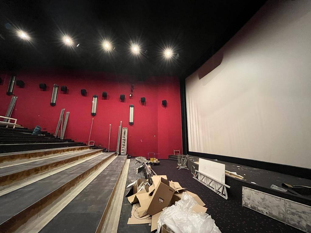 Nach der Übernahme des Kinos in Hamm wird überall gleichzeitig gearbeitet um Mitte Mai öffnen zu können. In Zukunft gibt es weniger Plätze, dafür aber teilweise Liegesessel. Der Kinoleiter hat bereits viel Käsesauce bestellt.
