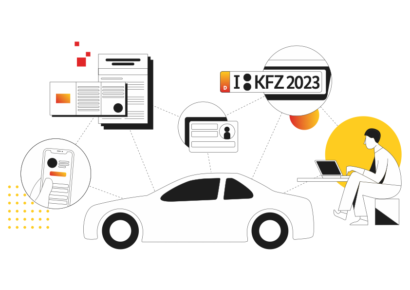 Auf der Webseite der für uns zuständigen Zulassungsbehörde müssen wir unsere Identität mit unserem Ausweis nachweisen. Danach werden der Sicherheitscode der Zulassungsbescheinigung Teil II, die Fahrzeug-Identifizierungsnummer und die eigene Kontonummer (IBAN) angegeben. Anschließend wird eine verfügbare oder zuvor reservierte Kennzeichenkombination eingetragen. Im letzten Schritt wird die anfallende Gebühr per Kreditkarte, PayPal, SEPA-Lastschrift oder einer anderen Zahlungsmethode bezahlt. Im Anschluss kann die digitale Zulassung heruntergeladen, ausgedruckt und gut sichtbar im Auto hinterlegt werden. Die Zulassungsbehörde versendet dann alle wichtigen Dokumente, wie z.B. den Zulassungsbescheid oder die Stempelplakettenträger, per Post.