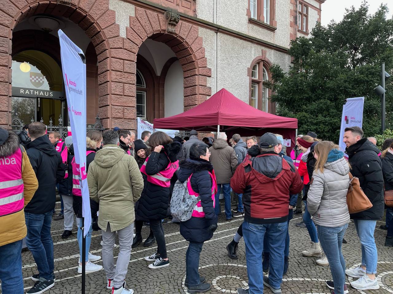 Zum Streik sind am Rathaus um die 80 Teilnehmer erschienen. Das sind mehr als doppelt so viel wie erwartet. Thorsten Schwark von der Gewerkschaft komba ist mit der Streikbereitschaft zufrieden: "Wir freuen uns, dass die Resonanz so groß geworden ist. Man sieht den Bedarf und dass das Interesse der Leute da ist. Wir waren ein bisschen überrascht, aber freuen uns, dass das wirklich so angenommen worden ist."