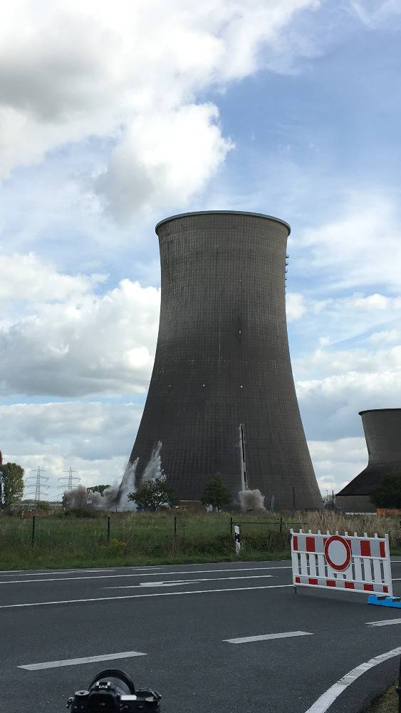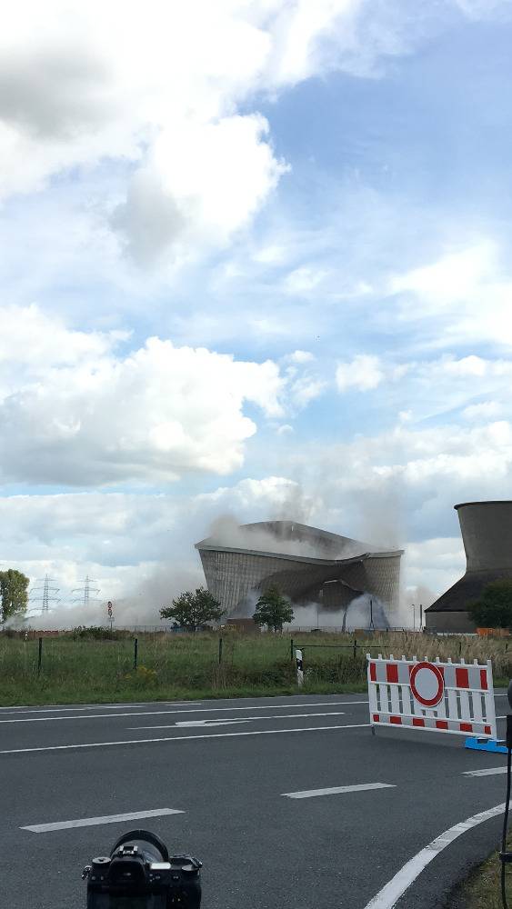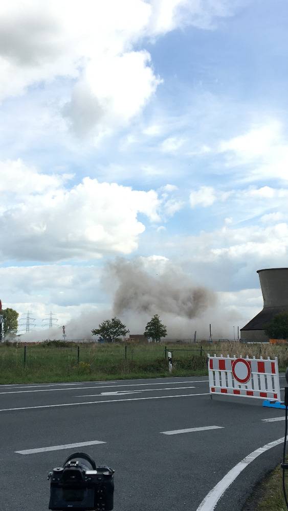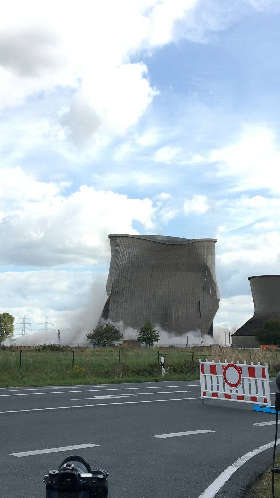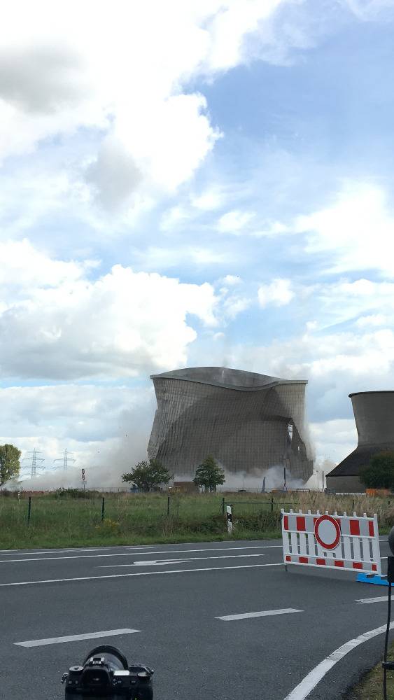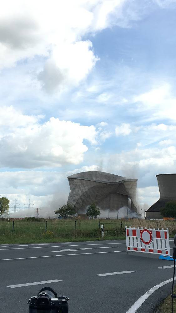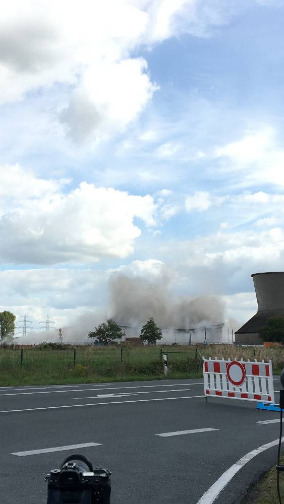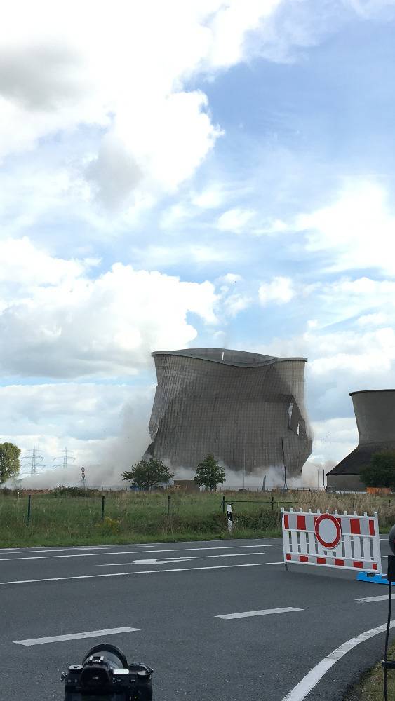 Bei der Sprengung fielen rund 10.000 Tonnen hochwertiger Bauschutt an, so RWE-Standortleiter Hartmut Frank. Er könne wiederverwertet werden. In den kommenden Wochen sollten dann die beiden angrenzenden kleineren Kühltürme mit Baggern abgerissen werden. Die freie Fläche wird dann zu Grünland.