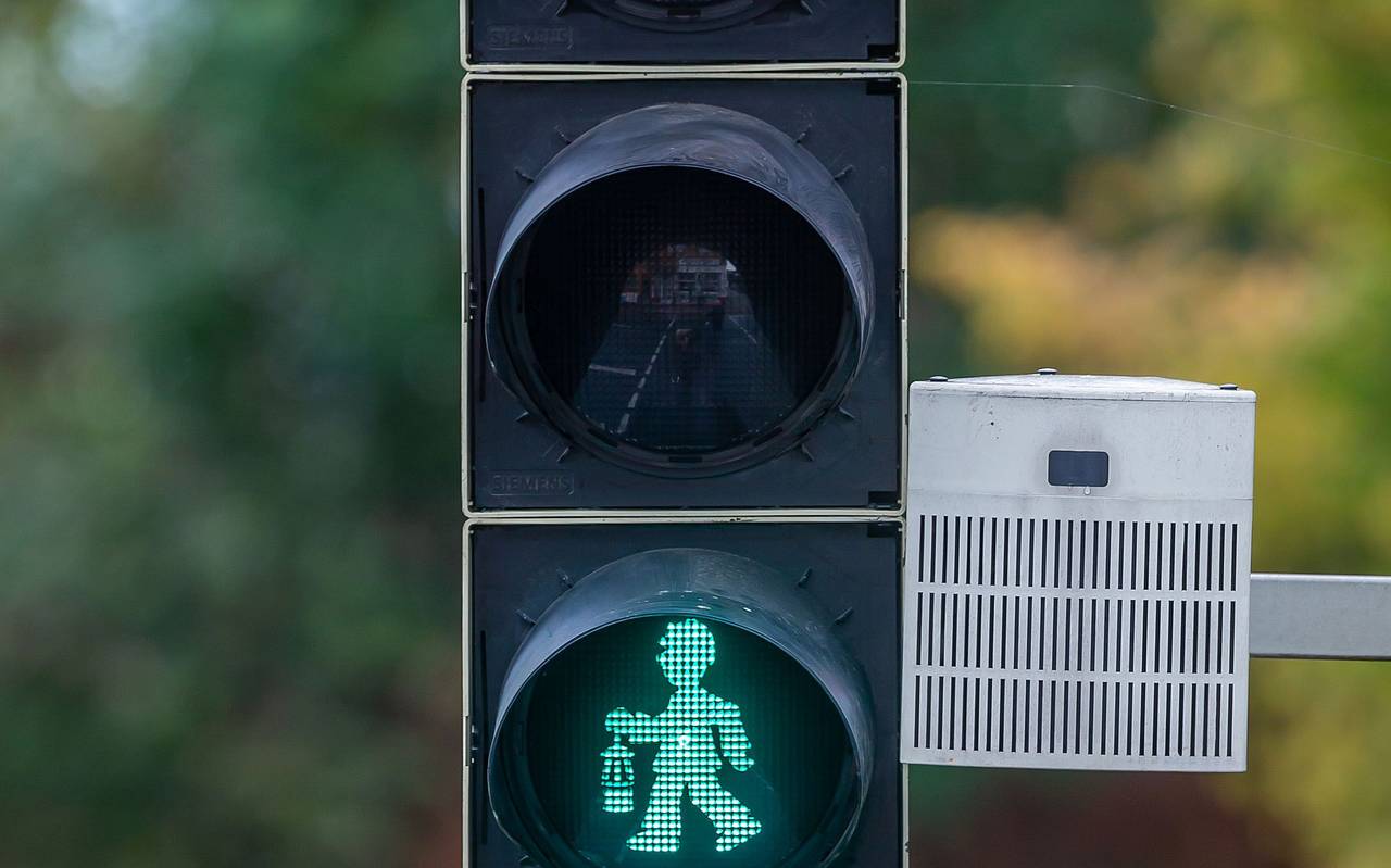 So soll an den Bergbau erinnert werden. Die Ampel zeigt einen Bergmann mit Grubenlampe und Helm.