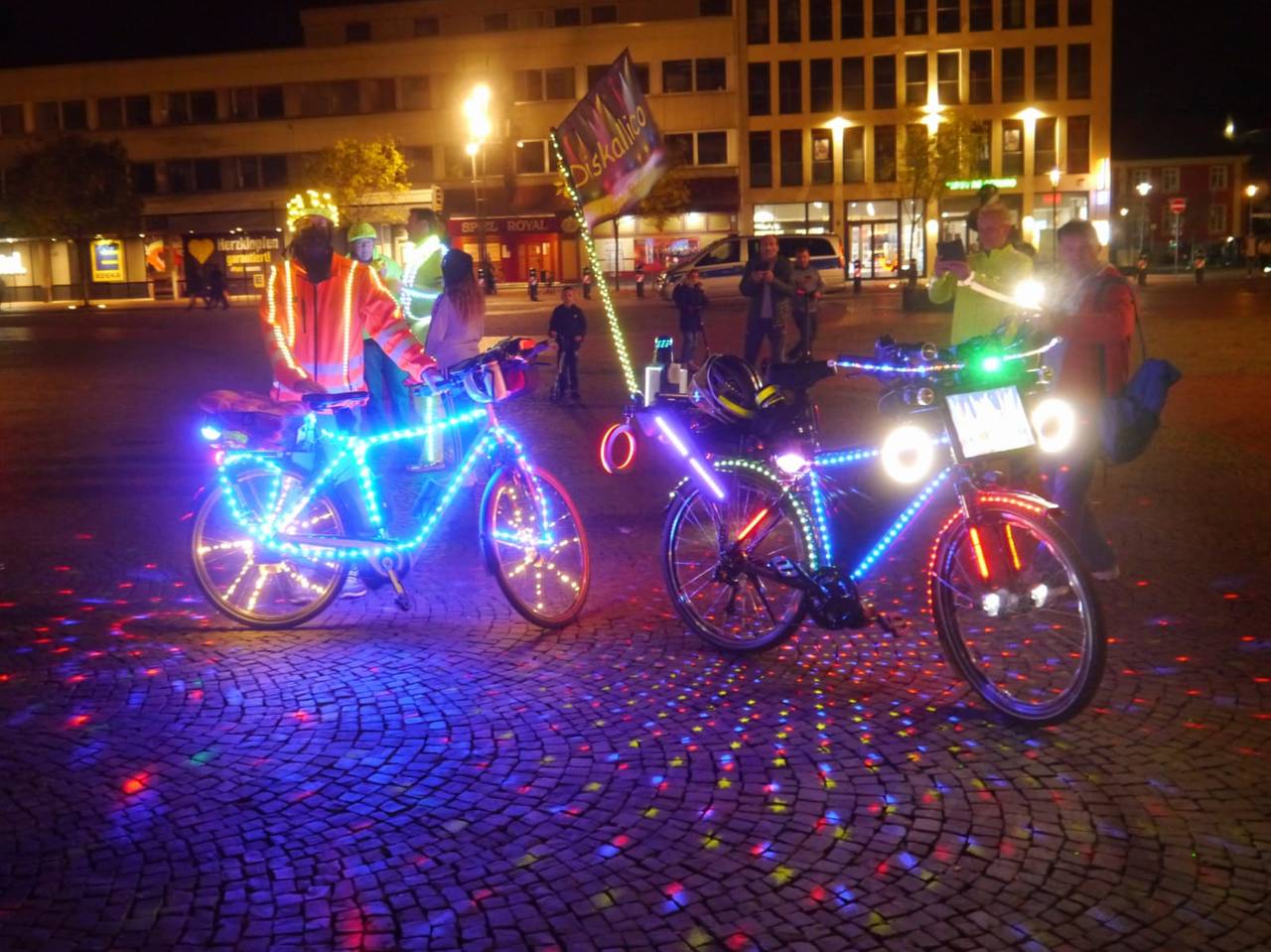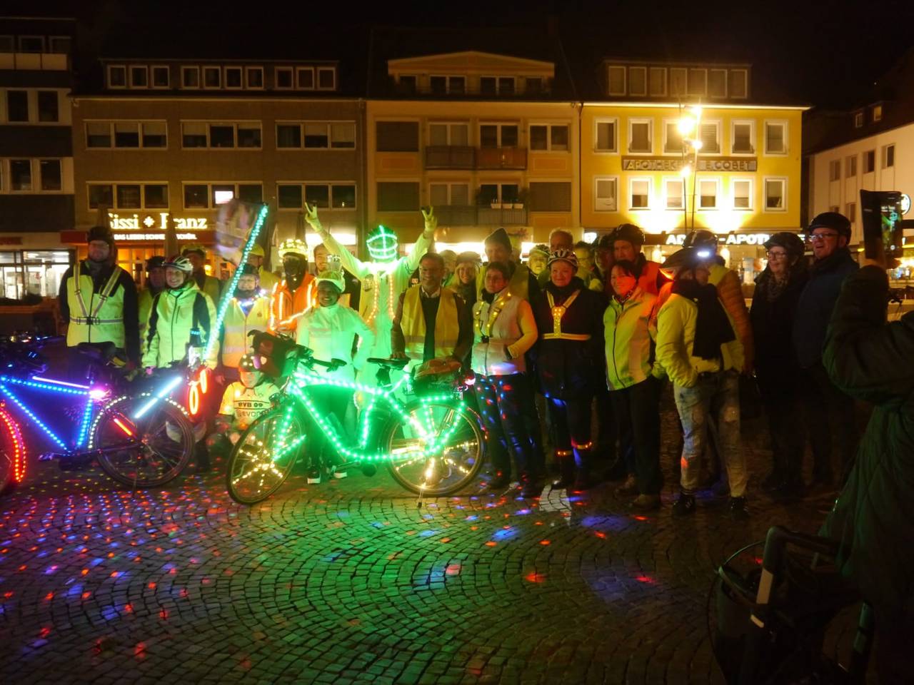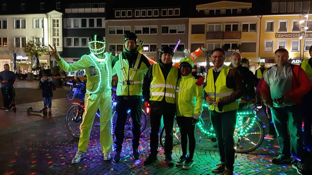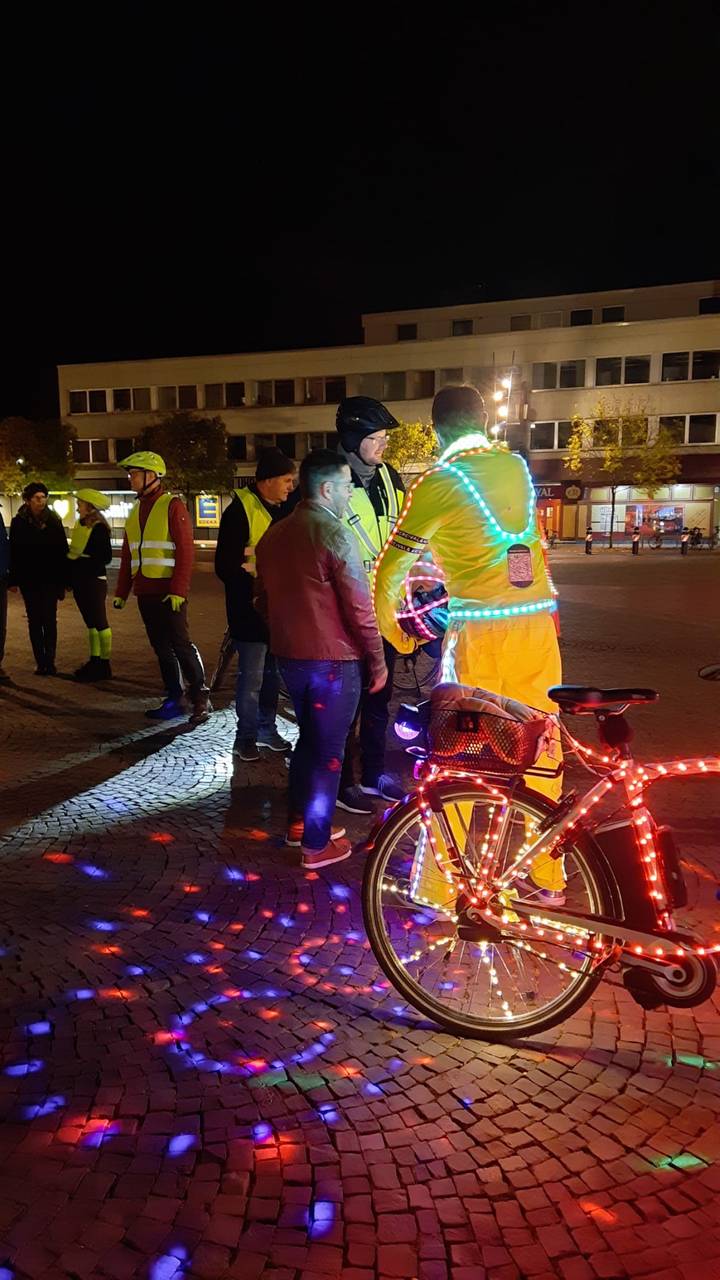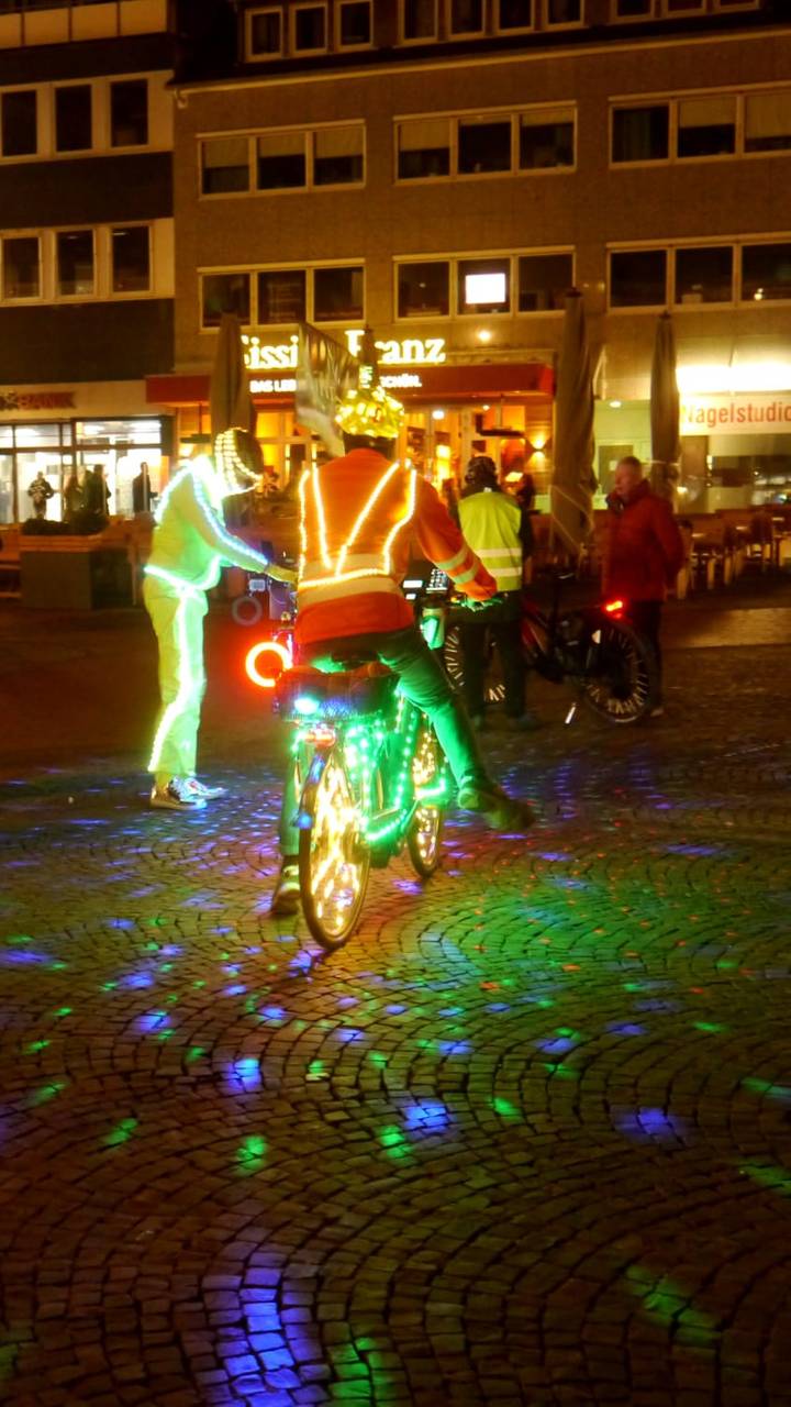 Etwa 50 Fahrradfahrer waren bei der einstündigen Tour durch die Innenstadt dabei. Viele Hammer fotografierten die leuchtende Gruppe. „Es war unsere aktuell größte Fahrt und uns lag am Herzen darauf aufmerksam zu machen das wir, jeder einzelne Radfahrer, sich im Dunkeln ordentlich beleuchtet am Rad und auch hell gekleidet im Straßenverkehr verhalten sollte", sagte Karl Jehne alias Diskallico. In der Facebook Gruppe der „Freizeitradler Hamm“ betonte er anschließend noch, dass er sowas noch nie erlebt habe und er Tränen in den Augen hatte. "Wir hoffen, mit diesem Event ein kleines bisschen dazu beigetragen zu haben, dass man sich eine Warnweste im Winter überwerfen sollte, wenn man dunkel gekleidet ist, damit die Autofahrer einen sehen“, sagte Organisator André Bassier.