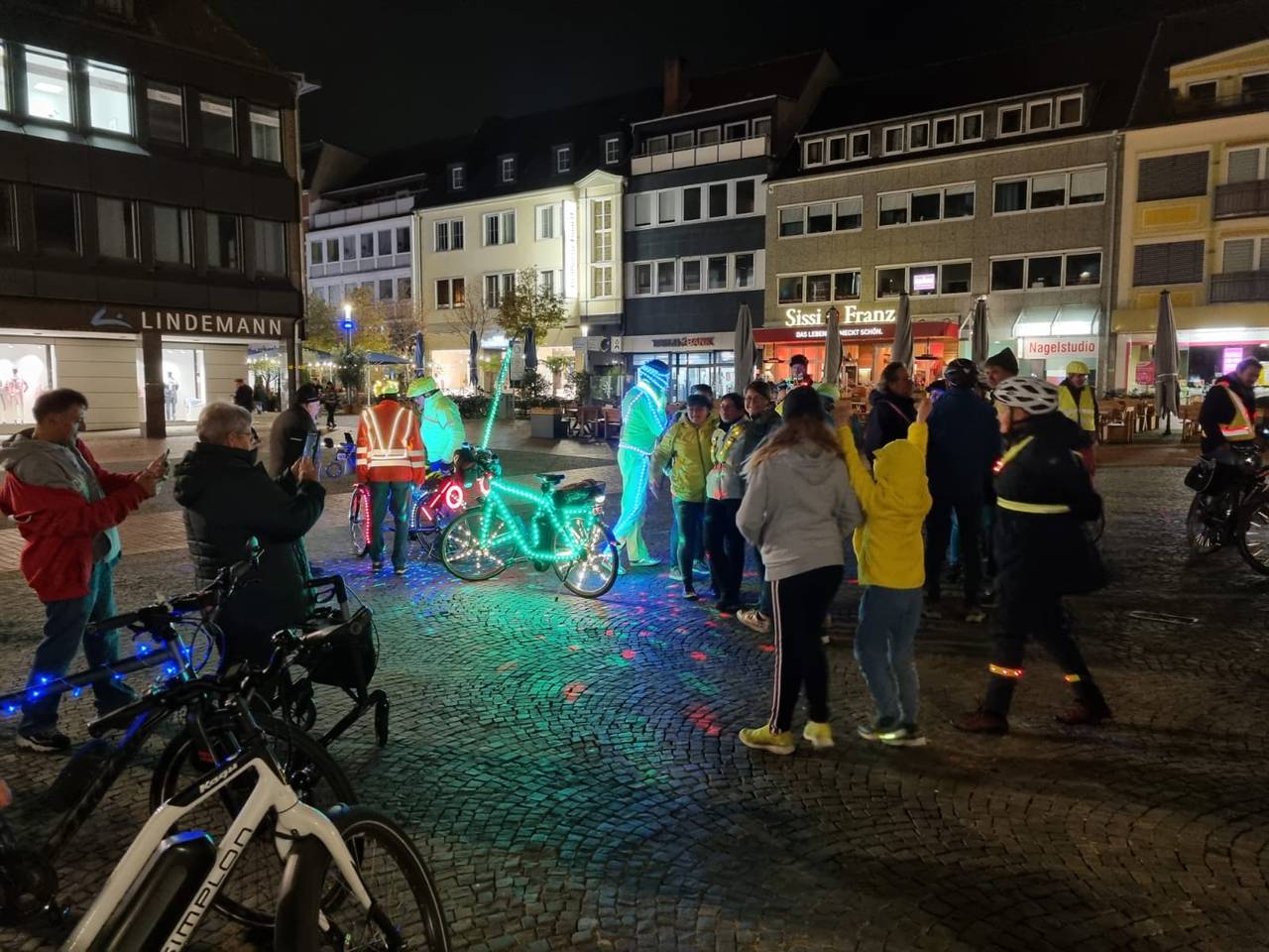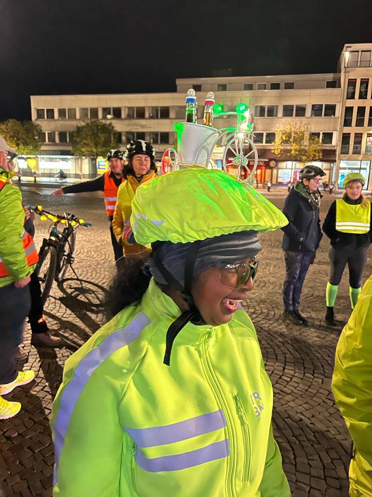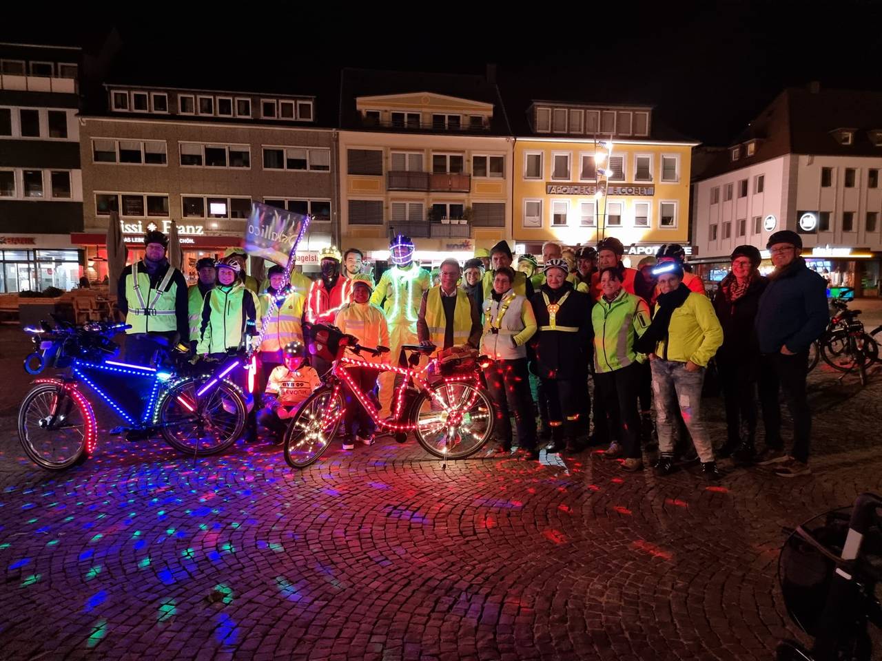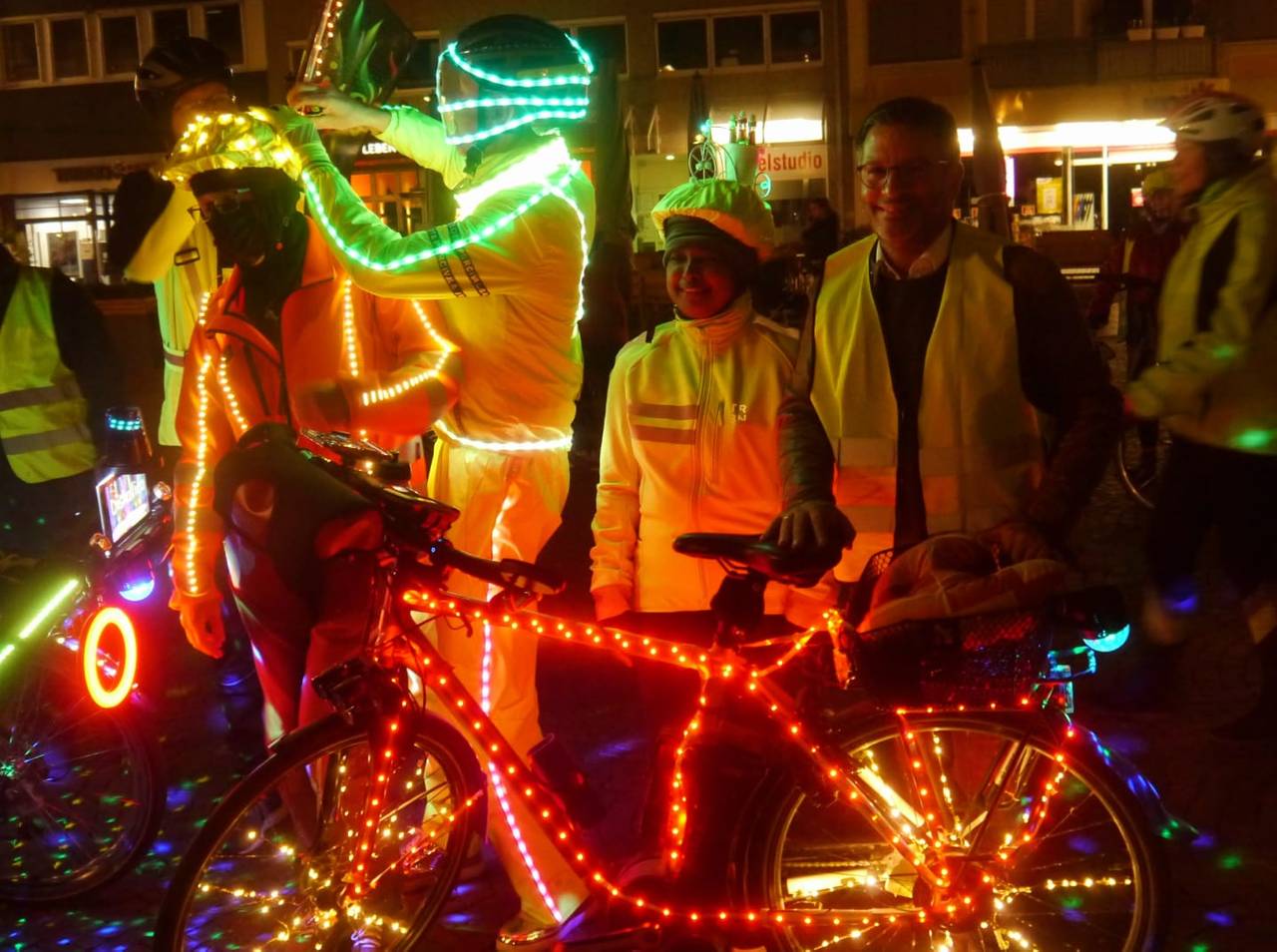 Etwa 50 Fahrradfahrer waren bei der einstündigen Tour durch die Innenstadt dabei. Viele Hammer fotografierten die leuchtende Gruppe. „Es war unsere aktuell größte Fahrt und uns lag am Herzen darauf aufmerksam zu machen das wir, jeder einzelne Radfahrer, sich im Dunkeln ordentlich beleuchtet am Rad und auch hell gekleidet im Straßenverkehr verhalten sollte", sagte Karl Jehne alias Diskallico. In der Facebook Gruppe der „Freizeitradler Hamm“ betonte er anschließend noch, dass er sowas noch nie erlebt habe und er Tränen in den Augen hatte. "Wir hoffen, mit diesem Event ein kleines bisschen dazu beigetragen zu haben, dass man sich eine Warnweste im Winter überwerfen sollte, wenn man dunkel gekleidet ist, damit die Autofahrer einen sehen“, sagte Organisator André Bassier.
