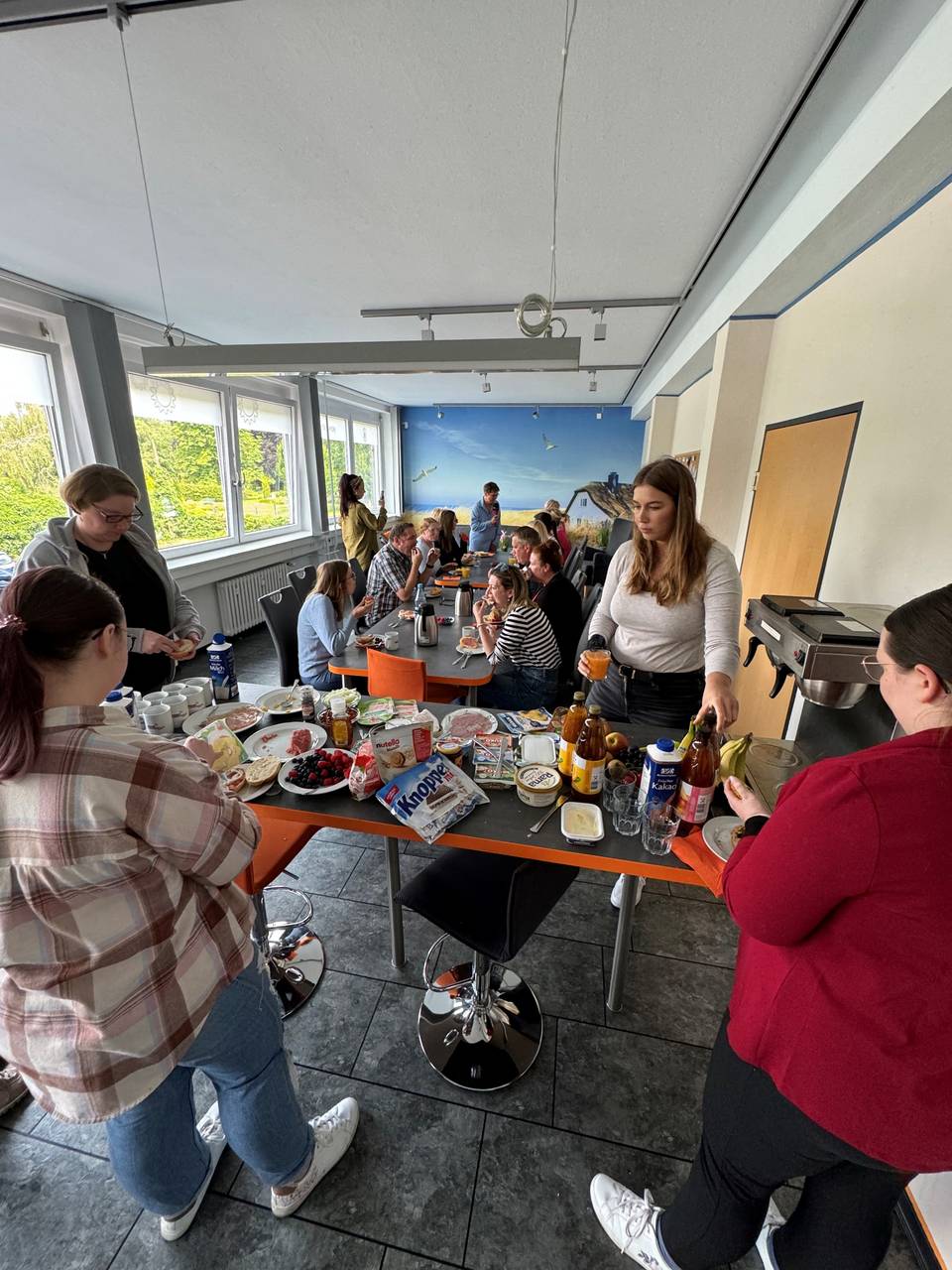 Neuer Einsatz für die Lippewelle Brötchenbringer! Und der hatte es in sich: Dieses Mal waren wir beim Inkasso-Unternehmen "First Debit" im Hammer Süden. Wie immer bepackt mit Aufschnitt, Käse, Marmelade, Obst, Süßigkeiten, Säften und Mett. Den Mitarbeitern hat das Frühstück sehr geschmeckt und nebenbei haben sie erzählt, wie stolz sie auf ihr Team sind. Die Wohlfühlkultur werde bei ihnen in der Firma sehr großgeschrieben. Deswegen gibt es öfter mal besondere Teambuilding-Maßnahmen, zum Beispiel ein Sommerfest mit Olympiade, Waffeln und Eis gibt es zwischendurch und statt Weihnachtsgeschenken gibt es Geld für die Patenschaften.