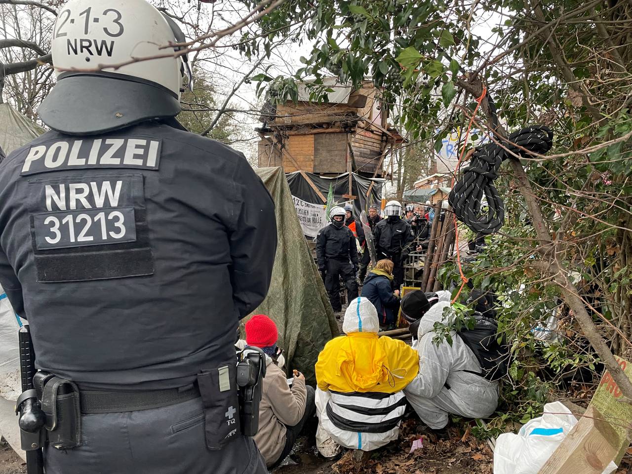 Polizeisprecher Andreas Müller hat sich gegenüber unseren Reporterinnen Jana Ulrich und Kimberly Kahle zur aktuellen Lage geäußert: "Wir sprechen mittlerweile Personen an, einige folgen, andere nicht. Man wird sehen, wie weit man kommt. Wir werden erst sehen, wie die Widerstandsstrukturen sind, wenn wir wirklich reingehen. [...] Wir haben oft betont, dass wir es so weit wie möglich kommunikativ lösen wollen. [...] Wenn es Vorwürfe seitens der Aktivisten zu Polizeigewalt gibt, werden wir die Fälle im Nachgang aufarbeiten."