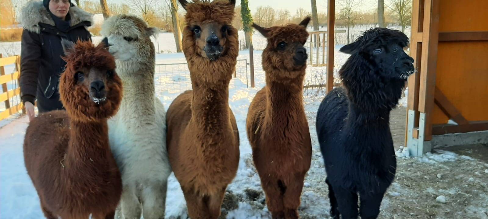 Insgesamt gibt es zurzeit fünf Alpakas (Karl, Chewbacca, Uwe, Zora und die schwangere Shadow) sowie zwei Lamas (Lana und Luna).