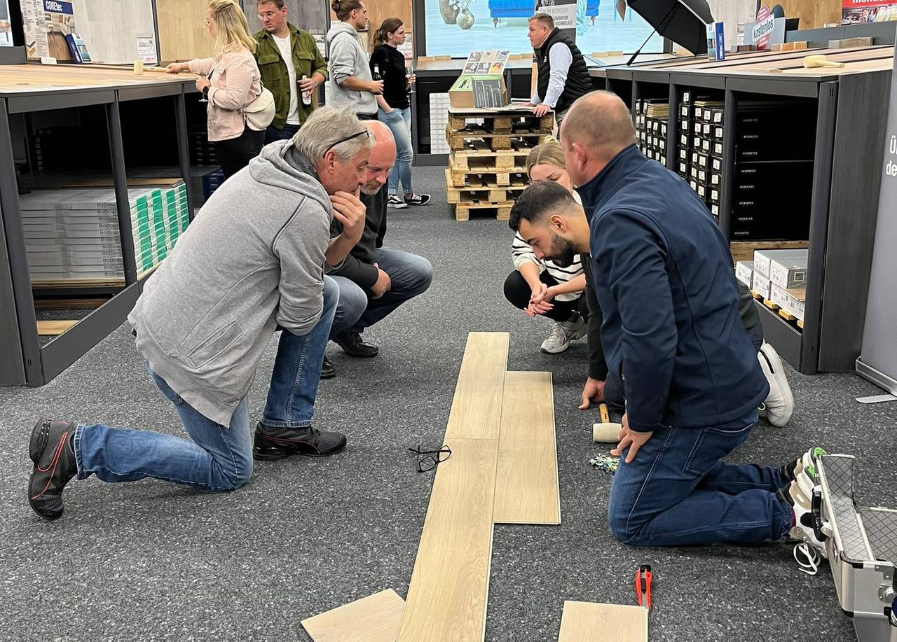 Alle Teilnehmer und Teilnehmerinnen vom Verlege-Workshop bei Laminat Depot in Hamm