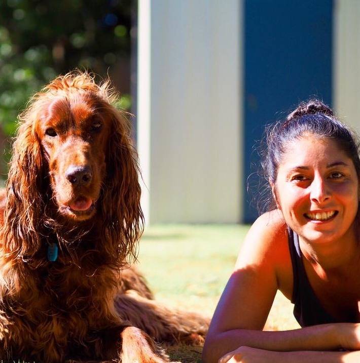 Fidi mit ihrem Hund. Sie macht professionelles Housesitting.