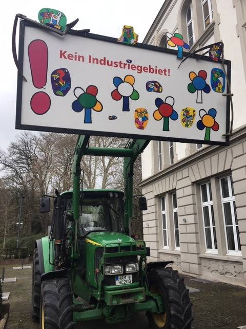 Der Protest gegen ein mögliches Industriegebiet in Norddinker hat am Ende nicht genutzt. Die Freiflächen in Sichtweite des Geithe-Waldes werden in den Regionalplan aufgenommen und könnten damit zum Industriegebiet werden. Das hat der Hammer Rat am Nachmittag entschieden. Anwohner aus Norddinker hatten im Vorfeld der Ratssitzung mit Traktoren und Transparenten vor dem Kurhaus demonstriert.