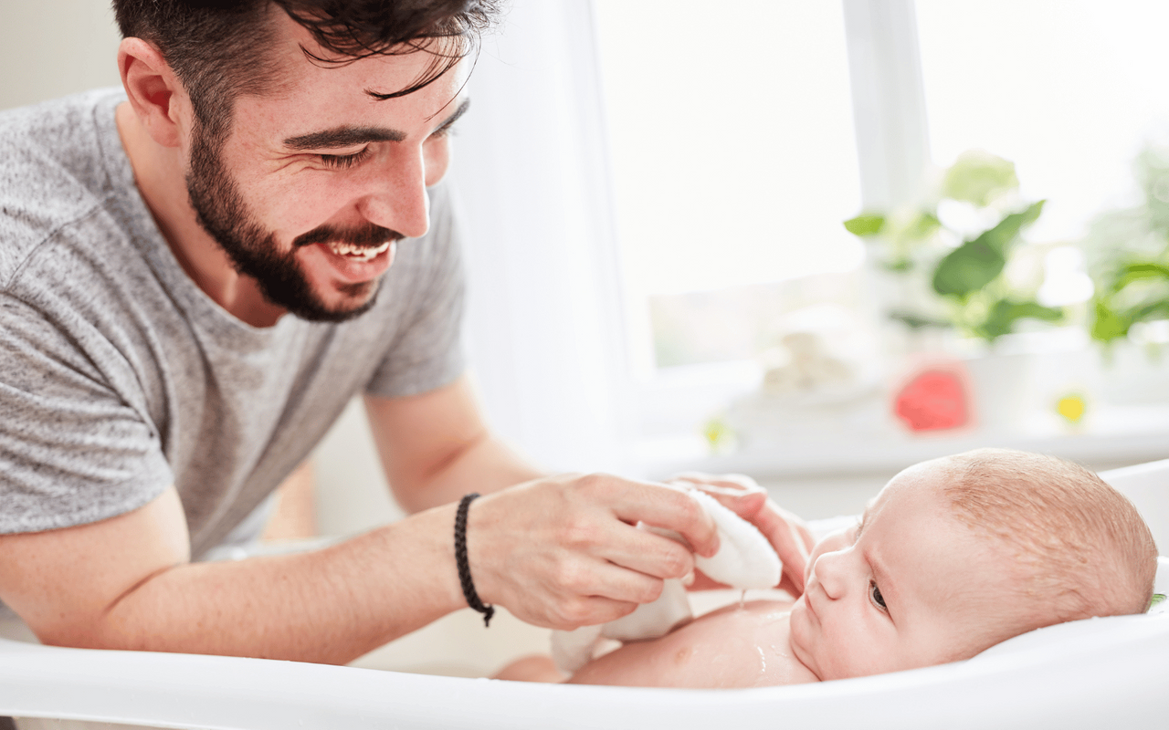 Mann mit Baby.
