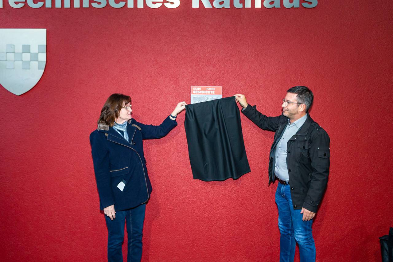 Vorher brachte die Stadt eine Gedenktafel am Haupteingang des Technischen Rathauses an. Am jetzigen Richard-Matthaei-Platz stand ein Sammellager, in das die Hammer Juden vor ihrer Deportation zwangseingewiesen wurden.