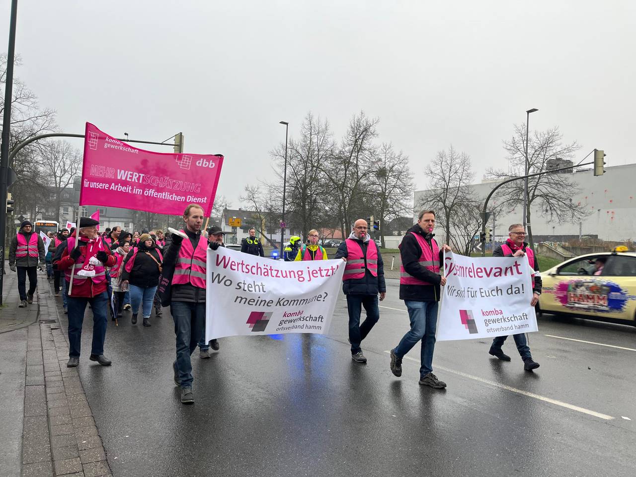Am 05. Februar 2025 ruft die Komba-Gewerkschaft in Hamm zum Warnstreik auf. Über 100 Beschäftigte treffen sich zu Kundgebung und Protestmarsch.